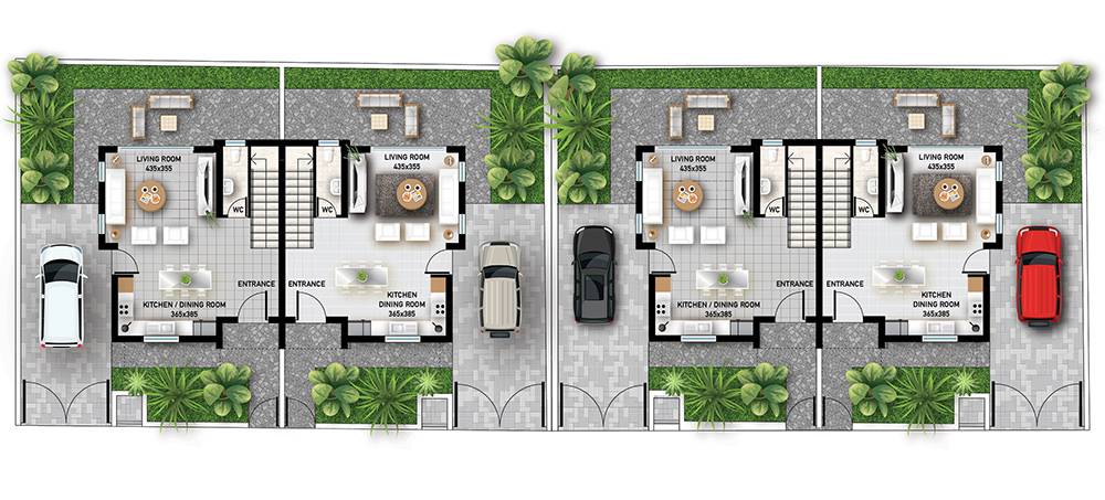 Двух уровневые дома с 2 спальнями имеют уютный современный дизайн, с внешней отделкой из дерева и частными ландшафтными садами Все дома имеют полы с подогревом, электрические жалюзи и окна с двойным остеклением для максимального комфорта в течение всего года, систему солнечных панелей подогрева воды, просторную парковку и доступ к детской игровой площадке и бассейну общего пользования.