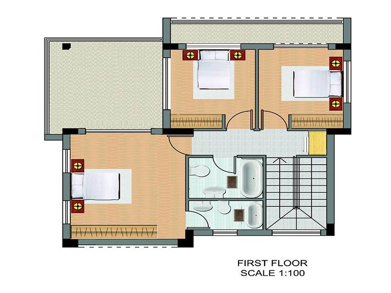 The two and three level houses with full sea views, each host their own private parking and garden, in addition to sharing a green lawn, and a children’s playground for more space and comfort.