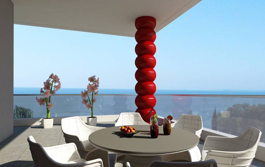 Здание, состоящее из 3-х уровней, по одной квартире на каждом этаже, расположено всего в 100 метрах от берега, что позволяет наслаждаться панорамным видом на лазурное Средиземное море.